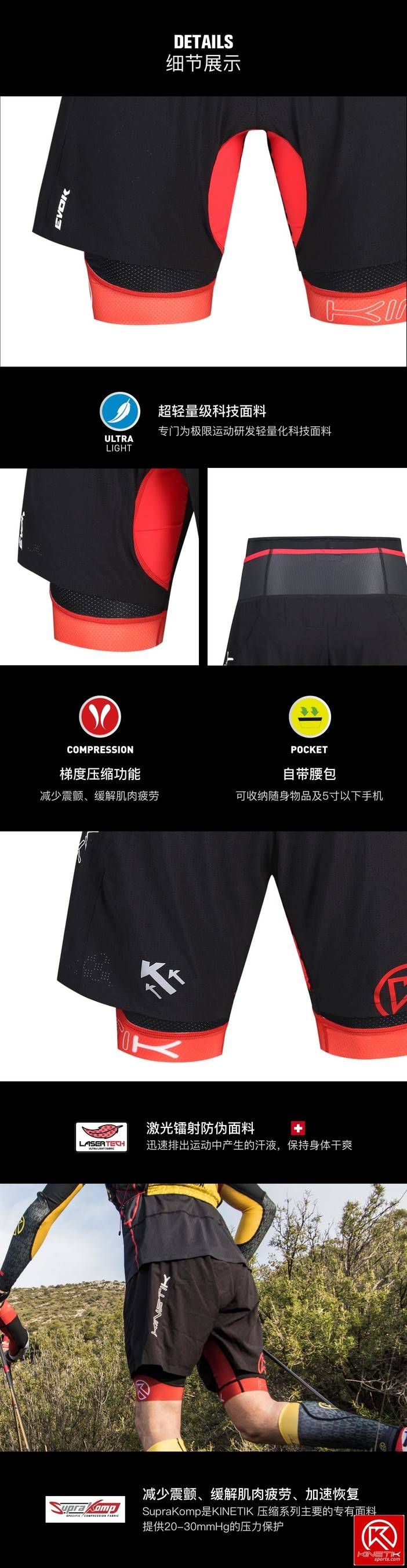 KINETIK UE 唤醒师双层压缩裤 轻量科技 越野跑 跑步 训练